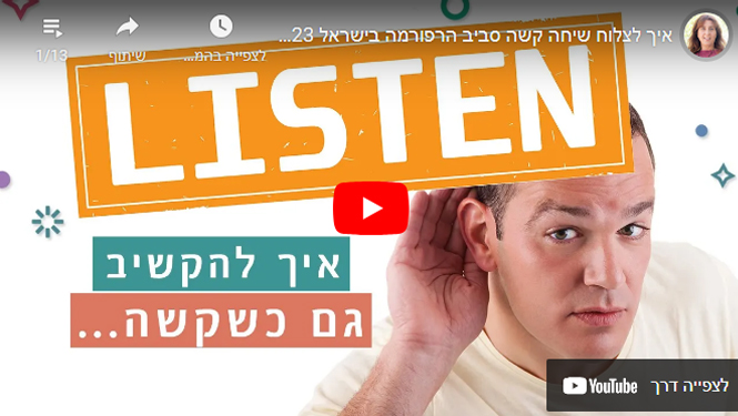 לפניכם שיחות מוקלטות שיתמכו בכם ויעזרו לכם לייצר תקשורת שמונעת קיטוב והסלמה בימים אלה בישראל 2023. מוזמנים ומוזמנות לצפות ואני מקווה שתפיקו מזה תועלת ואפילו תעבירו את זה הלאה…